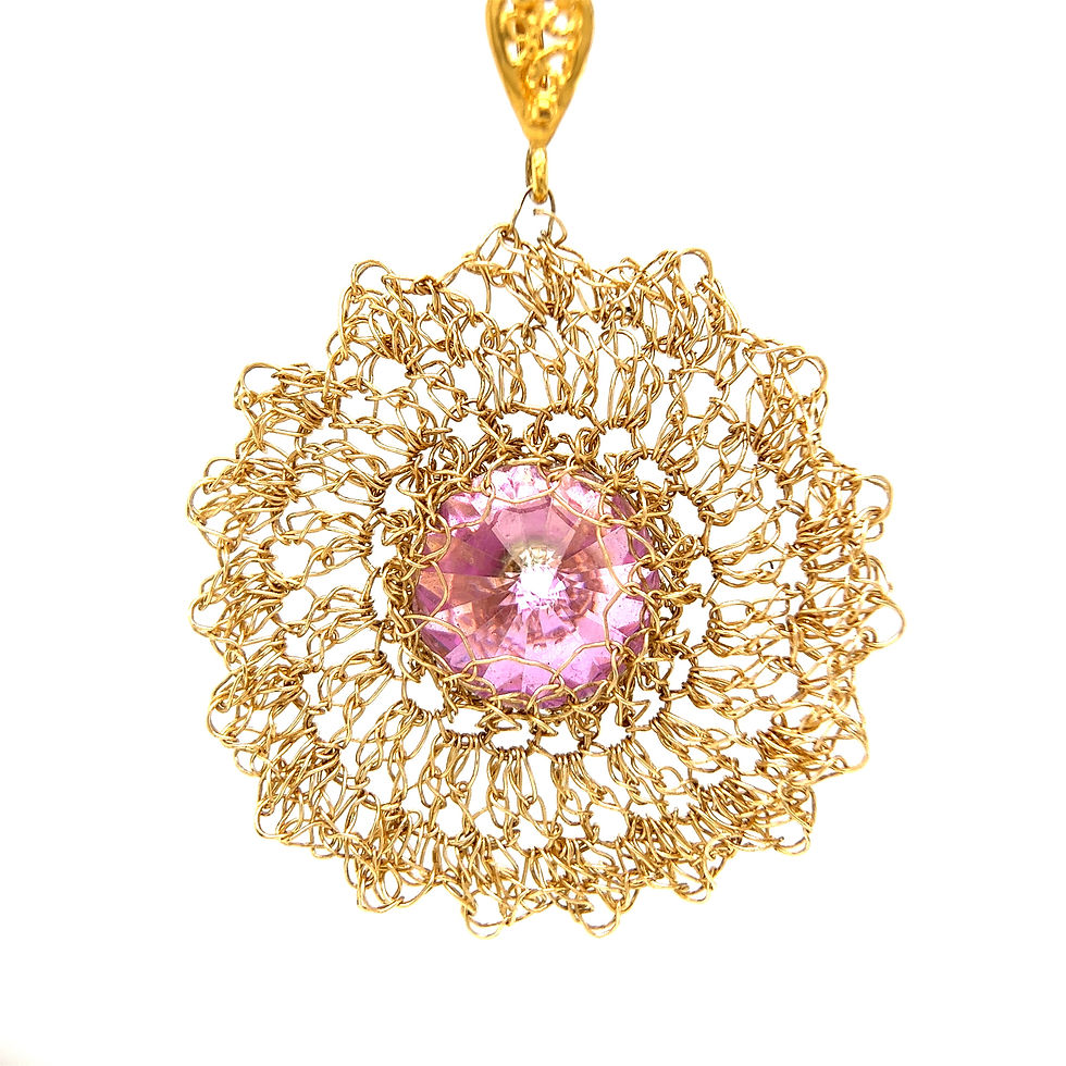 תליון גולדפילד עגול ואבן סברובסקי ורודה מרכזית